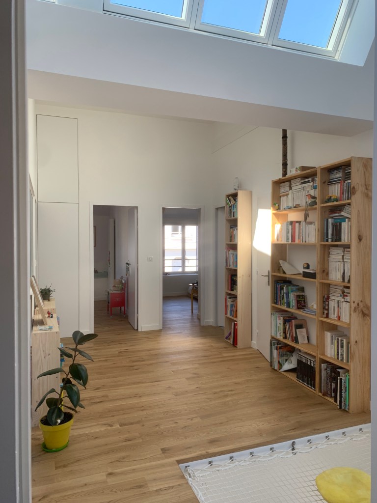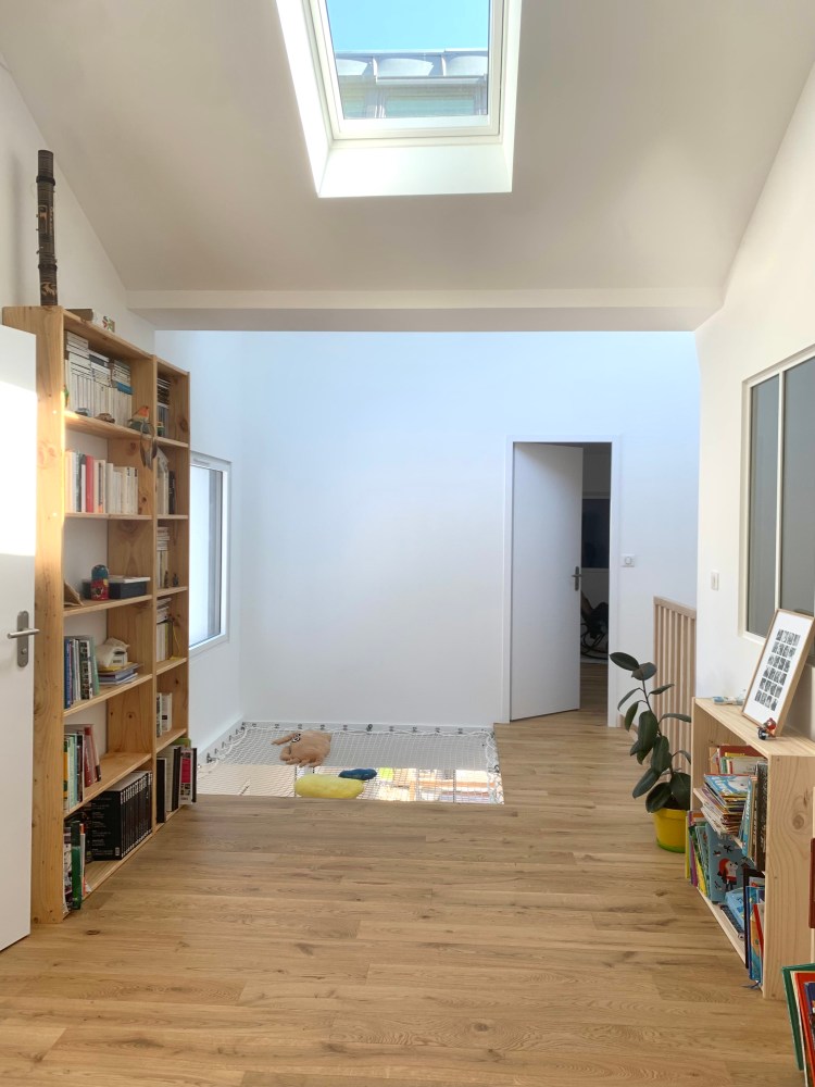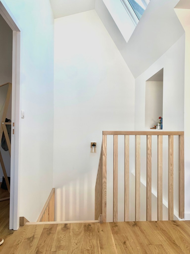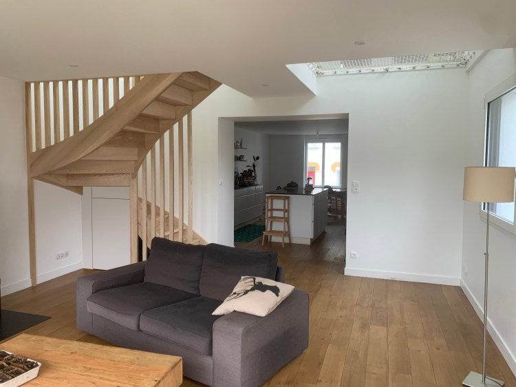 L’isolation renforcée de la maison couplée à des murs de réserve d’inertie et de larges apports de lumière orientés de manière à ne pas laisser rentrer la chaleur l’été fait de ce projet une maison très performante sur le plan énergétique.